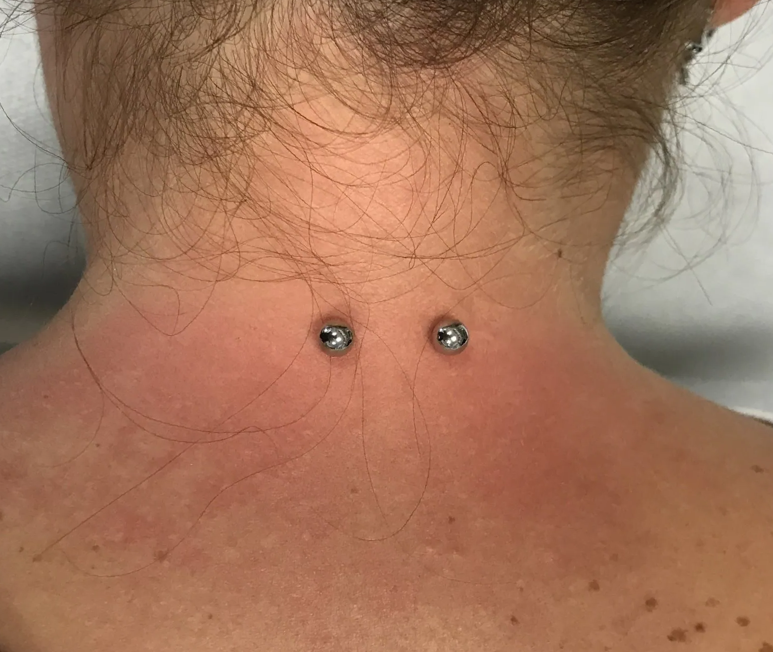 I piercing della superficie cutanea rappresentano una particolare tipologia di piercing che coinvolge la superficie della cute. Questi piercing vengono realizzati attraverso una tecnica che consiste nell'attraversare la pelle parallelamente ad essa, senza interessare alcuna zona sporgente del corpo. A differenza di altri tipi di piercing più tradizionali, i piercing della superficie cutanea si inseriscono in strati superficiali della pelle, creando un aspetto estetico distintivo e unico. Questa caratteristica li rende particolarmente apprezzati da chi cerca di esprimere la propria individualità in modo sottile e raffinato.